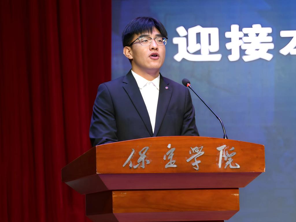 学生代表、教师教育学院2023级应用心理学专业张思达在发言中以“以德立心、以学赋能、以责担当”为核心,表达了服务人民、奉献祖国的赤诚情怀以及用青春之力写好评估答卷的坚定信心。