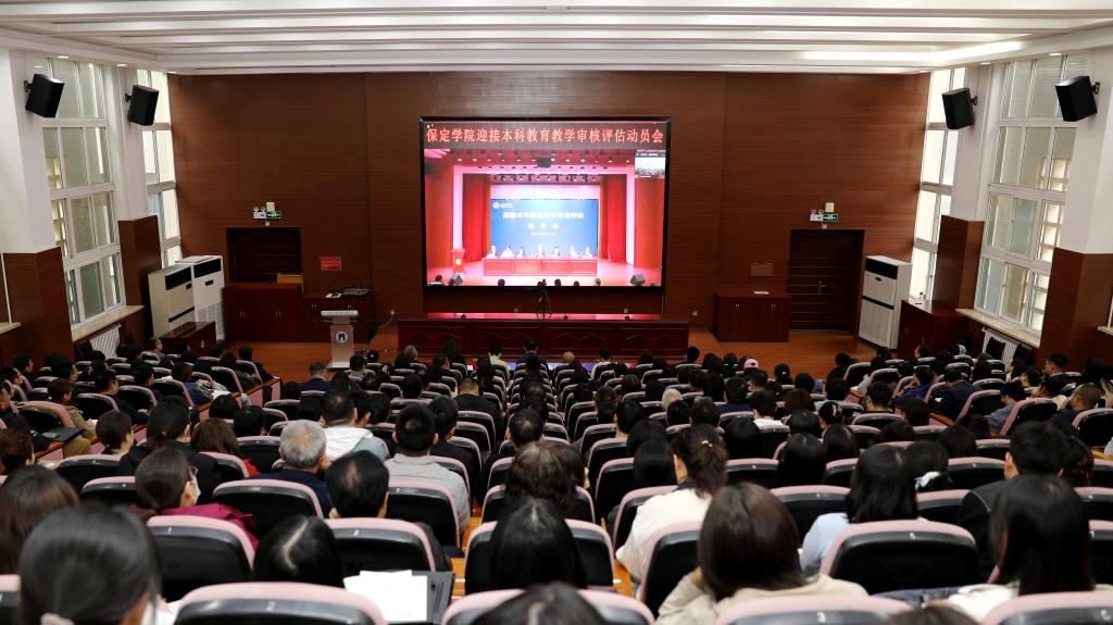 党委书记周林伟以《坚定信念勇担当 以评促建谋发展 全力以赴打赢本科教育教学审核评估攻坚战》为题作动员讲话。他从提升政治站位,深刻认识审核评估工作的重要意义;全面对标对表,进一步明晰评估目标任务;严明纪律规矩,压紧压实工作责任等三个方面,对迎评促建工作进行了全过程、全覆盖、全要素的调度安排和工作动员,聚焦任务、聚焦责任、聚焦目标,进一步细化工作要求和责任链条。周林伟强调,审核评估是对学校落实立德树人根本任务,坚持以人为本、持续推进教育教学质量提升的全方位体检,是对学校人才培养体系由表入里的深刻检视,事关全局、事关未来,更关乎每一位保定学院人的荣誉。全校要做好迎接审核评估专家组线上评估及进校考察的各项工作,以良好的精神风貌和教育教学状态展现学校发展新成就。同时,要以审核评估为牵引,持续深化教育教学改革,全面提升教育教学水平,为加快建成符合新时代要求、受人尊重、特色鲜明的地方高水平应用型大学而努力奋斗。